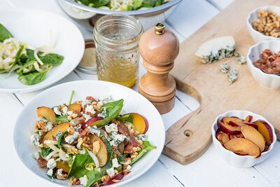 Mélanger les pacanes et le fromage dans le bol de salade et servir.